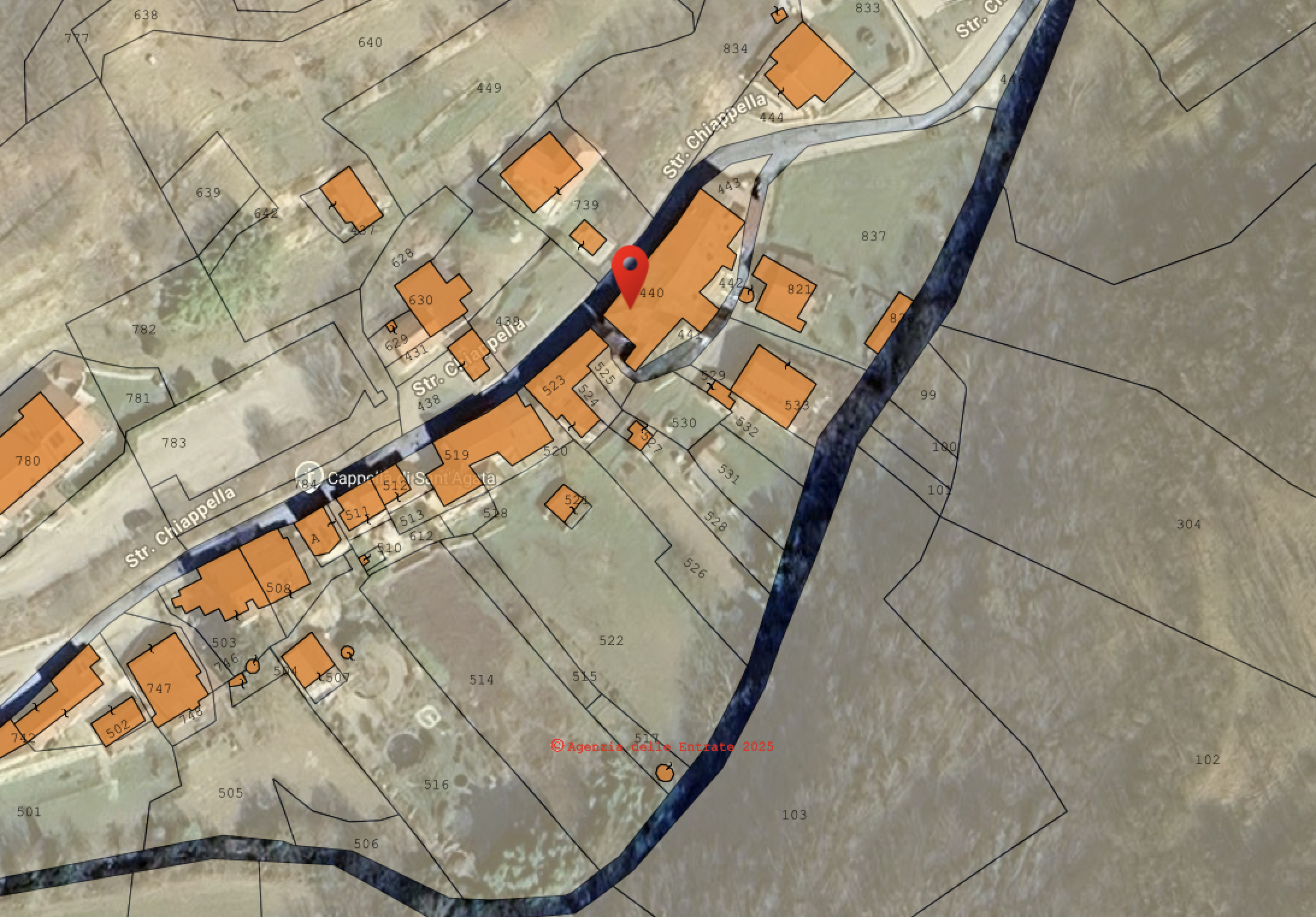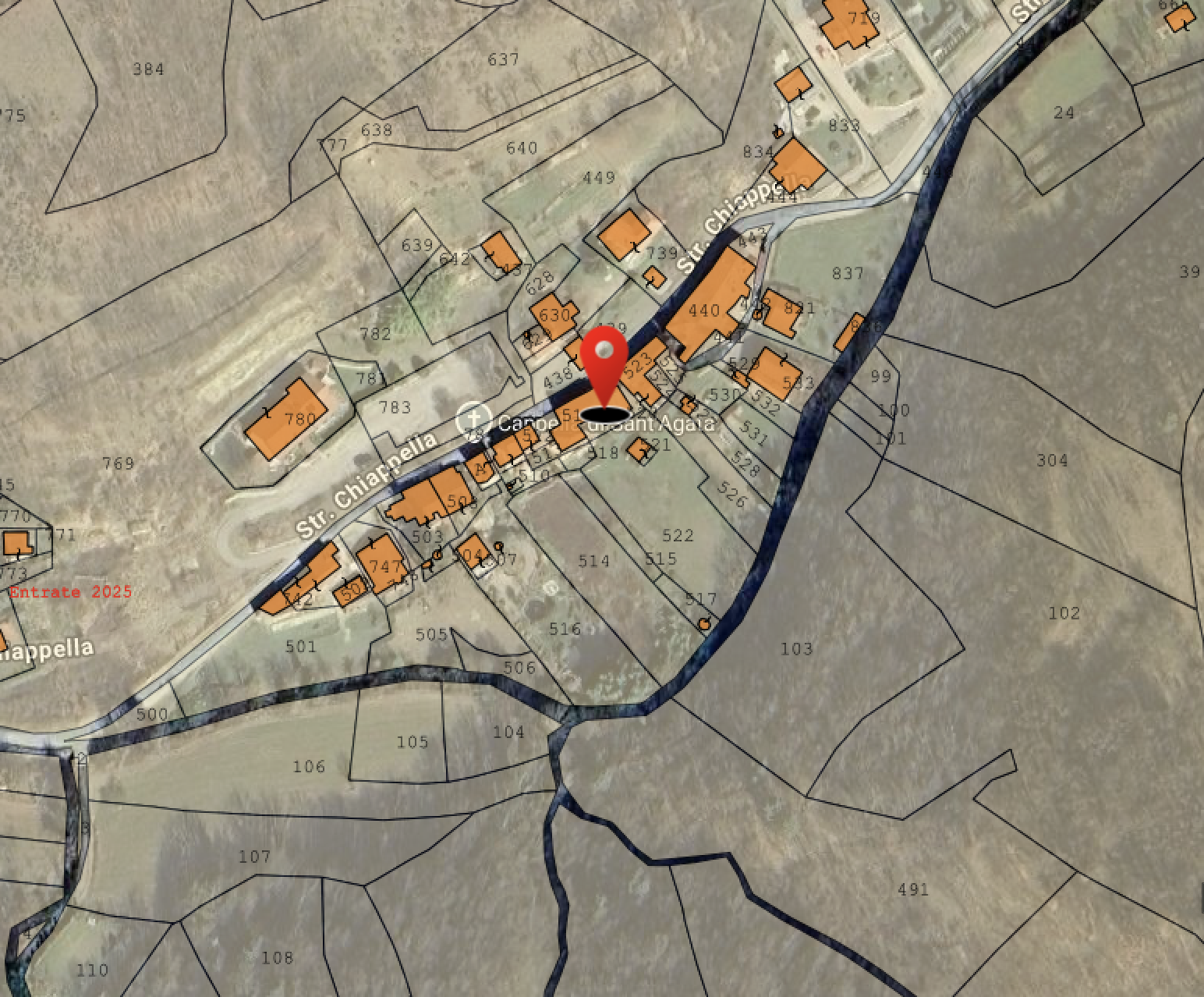 - Mappa Catastale di riferimento: Catasto Terreni oltre Torrente.png