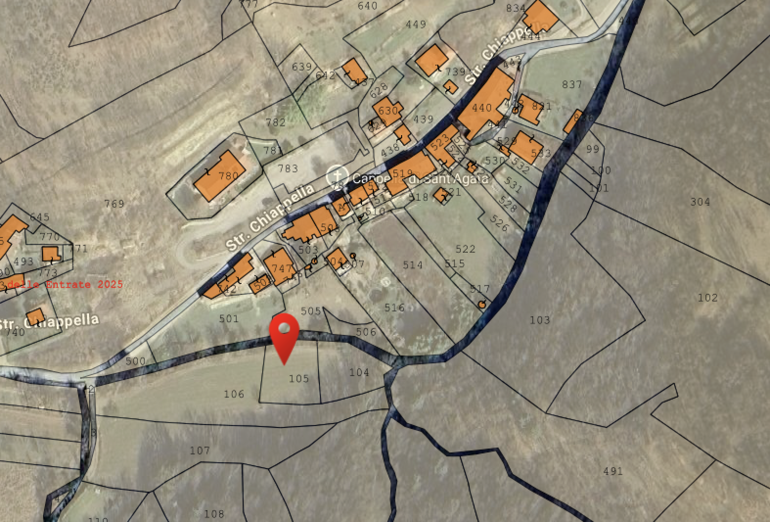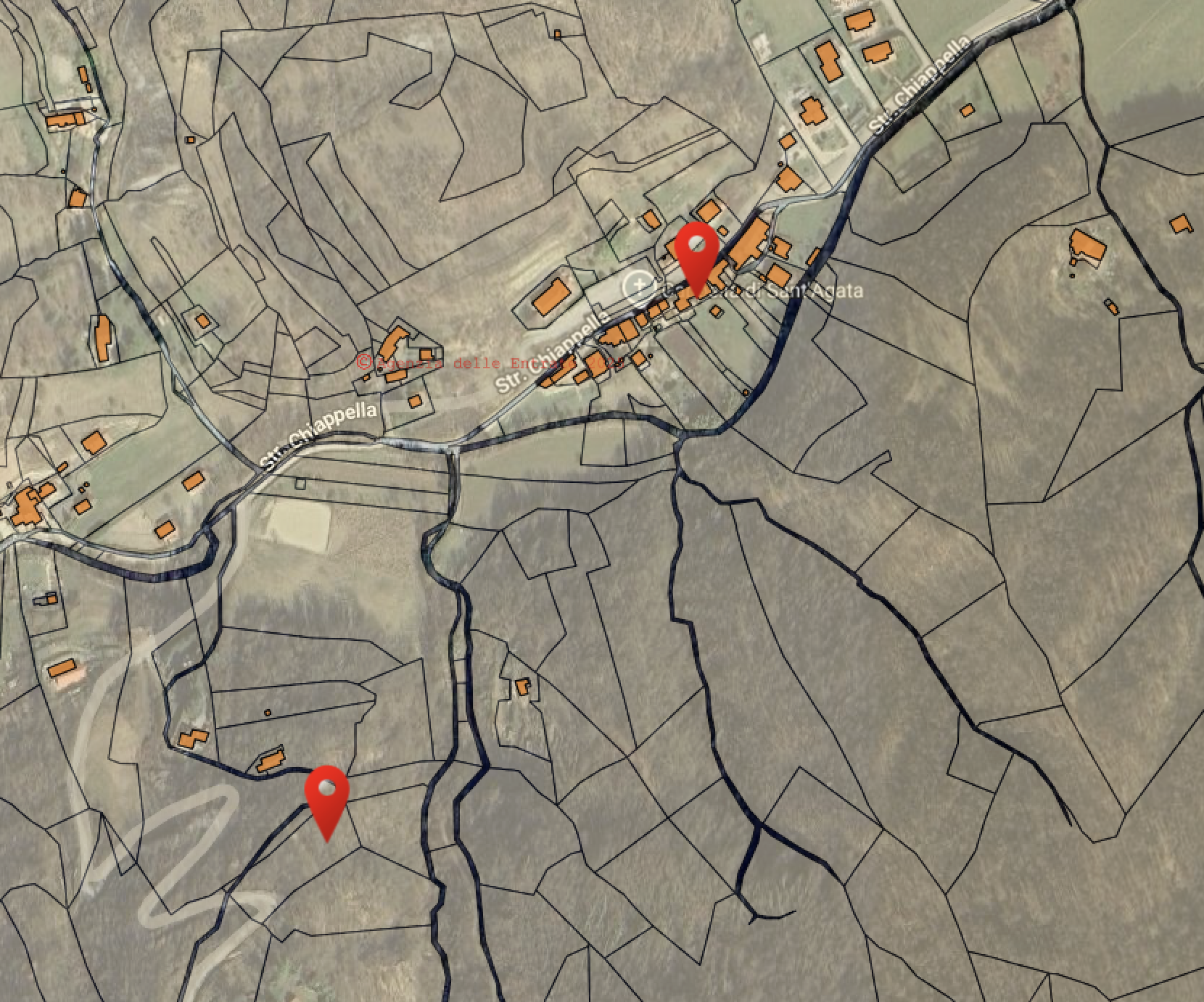 - Mappe Catastali di riferimento: Catasto Terreni alla Fonte.png, Catasto Terreni alla Fonte vs Chiappella.png